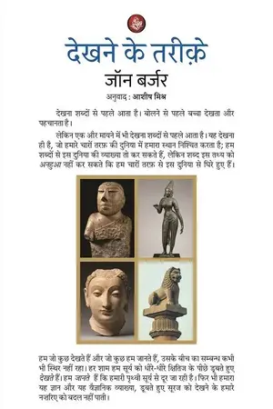 जॉन बर्जर की इस किताब ने पेंटिंग और कला-आलोचना के बारे में सोचने का तरीक़ा बदल दिया। यह शब्दों और चित्रों के ज़रिए दिखाती है कि हम जो कुछ भी देखते हैं, वह हमेशा सुन्दरता, सत्य, सभ्यता, रूप, स्वाद, वर्ग और लिंग सम्बन्धी हमारे अनेक पूर्वग्रहों से प्रभावित होता है। जॉन बर्जर ऑयल पेंटिंग्स, फ़ोटोग्राफ़्स और ग्राफ़िक कला में छिपे अर्थों की तहदारी की पड़ताल करते हैं और यह तर्क देते हैं कि जब हम देखते हैं, तो हम केवल देख नहीं रहे होते— हम छवियों की भाषा को पढ़ रहे होते हैं।
